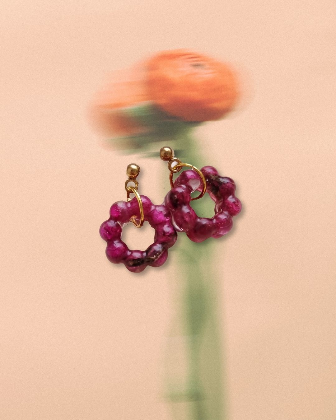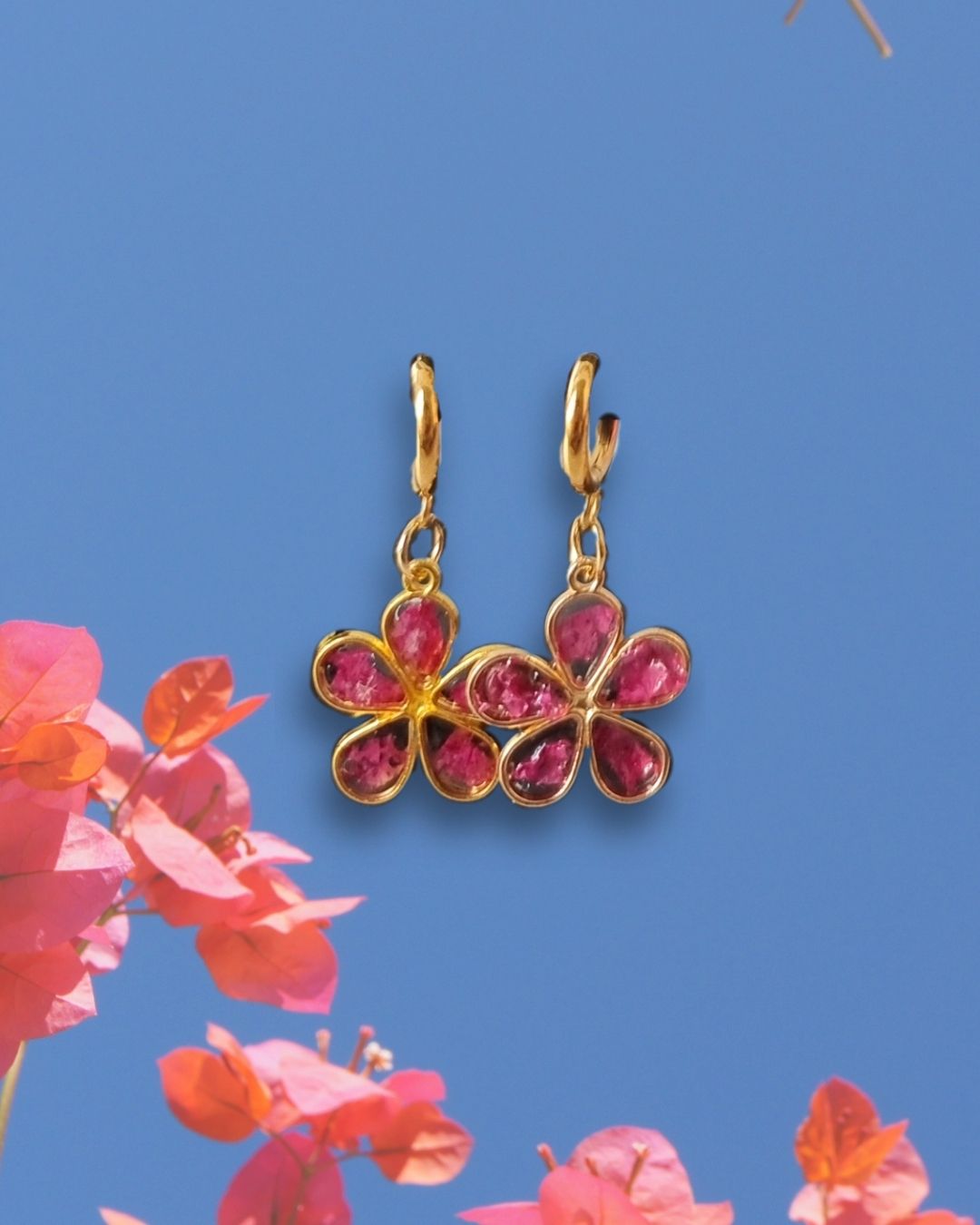 Lleva la flor de Buganvilla en tus pendientes 🌸 Pétalos de la flor real encapsulados en resina, un modelo único y original ✨ Hechos a mano con mucho amor <3
