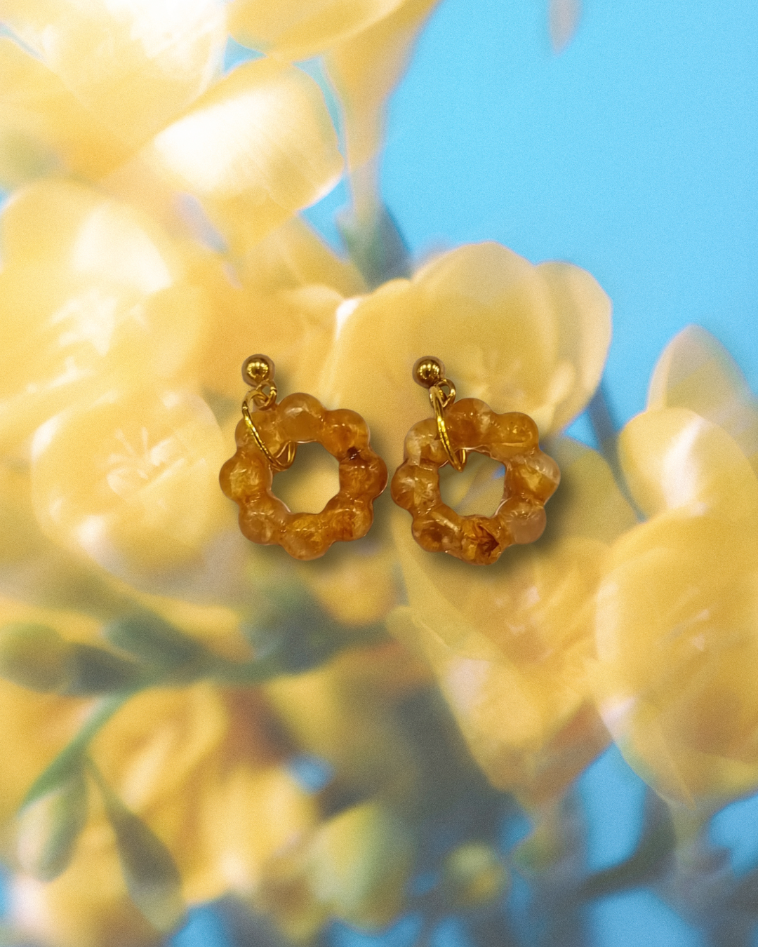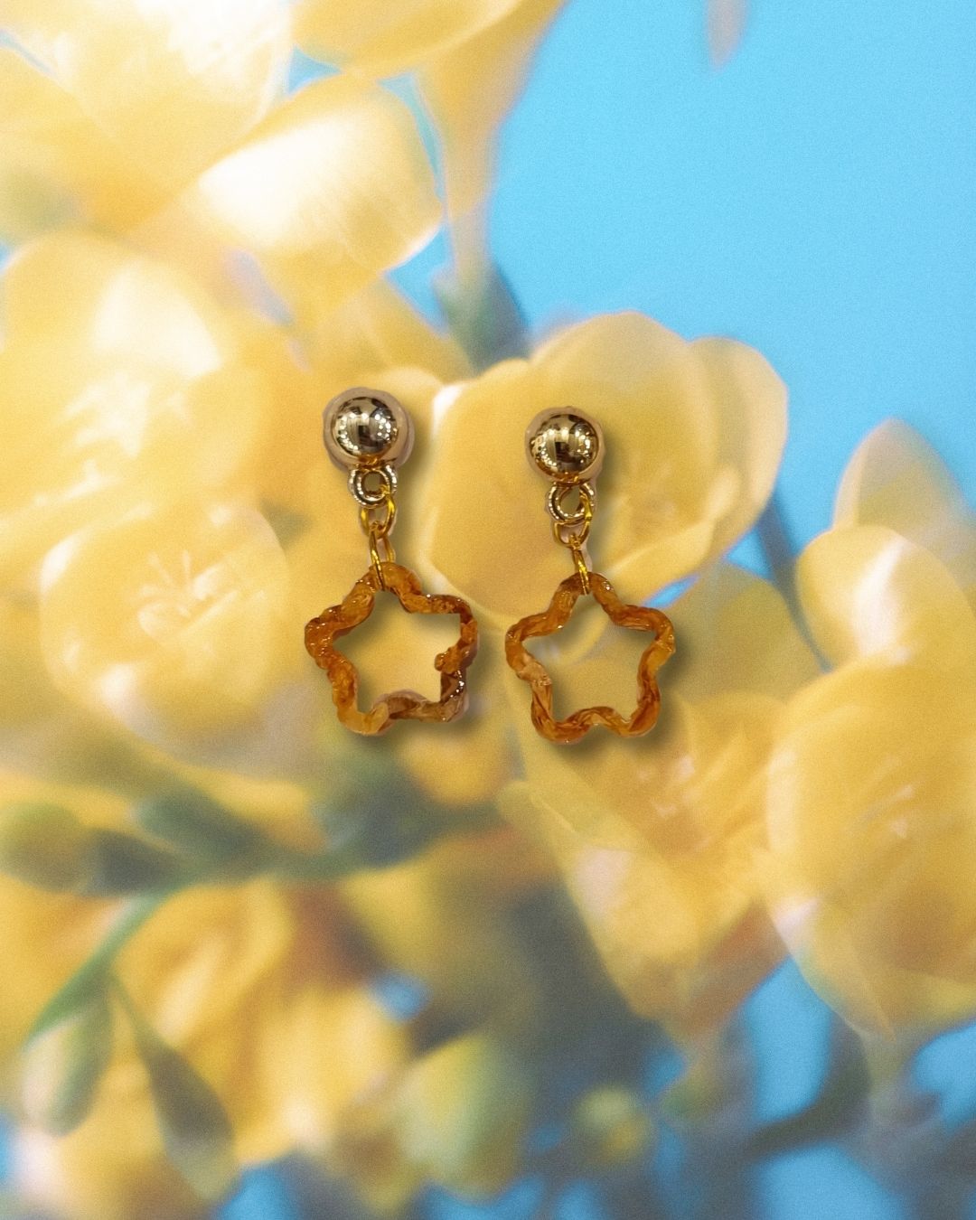 Lleva la flor del colorido árbol Tipuana en tus pendientes 🌸 Entre mayo y junio, la Tipuana florece y llena de color las aceras y callecitas de todo Barcelona. Estos aretes tan bonitos están compuestos por pétalos de la flor real encapsulados en resina, un modelo único y original ✨ Hechos a mano con mucho amor <3
